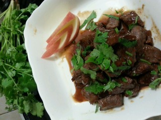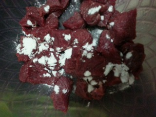 用不粘锅加一点点的油,把牛肉粒煎一煎