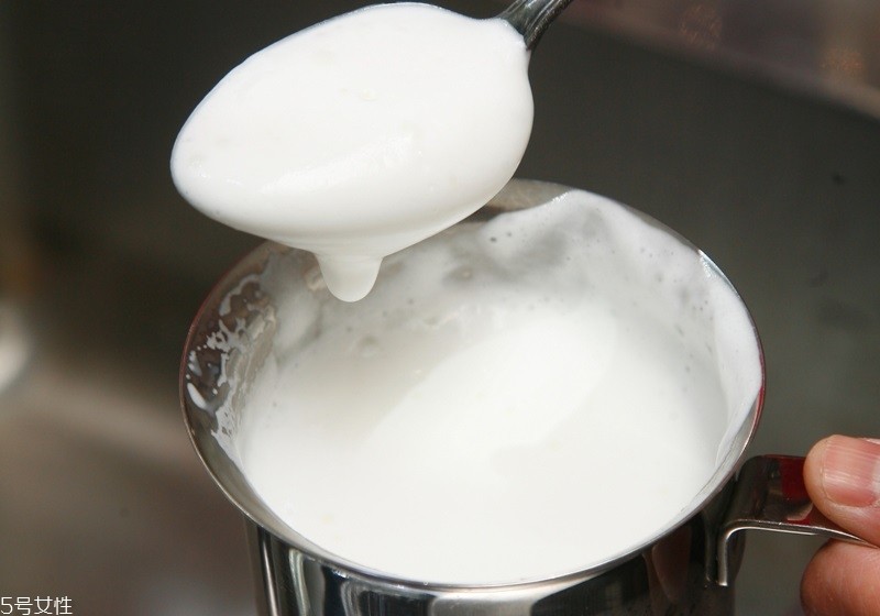 牛奶放入拉花杯中,加入适量水,打好奶泡