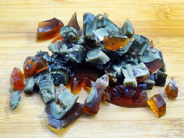蒸熟后的皮蛋切成小丁