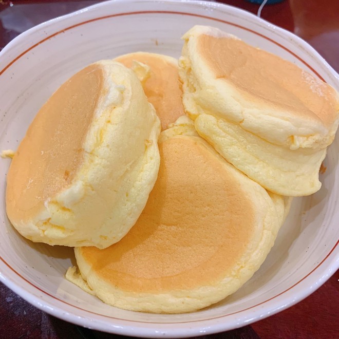 用不粘平底锅,开火预热,燃气灶或者电磁炉电陶炉都可以,后者做的受热着色比较均匀,用挖冰淇淋的勺挖一大勺在锅里,再在上面补一勺,打到位的面糊是丰盈有弹性可以像冰淇淋一样叠起来的