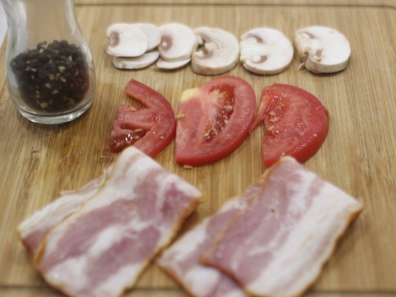 准备好食材,蘑菇、包菜和西红柿切片