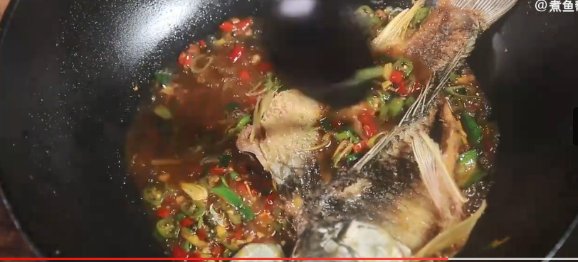 锅中放油烧至四成热,将鱼用小火煎至两面金黄发硬,烹入料酒,下入蒜瓣、红椒、腊肉丝、咸菜丝,再放酱油、白糖、红油、陈醋,加入热水将鱼浸没,大火烧开后盖上盖子,小火焖15分钟,待收至略有汤汁时,放盐调味后盛入长盘,留原汁勾薄芡,倒入长盘中,上撒小葱花即可。