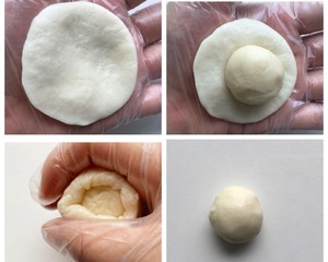 放入馅料用虎口收口。 收口朝下。