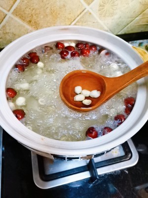 锅下水煮沸 先加入莲子百合红枣