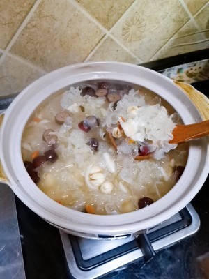 莲子百合红枣煮30分钟后加入银耳再煮40分钟
