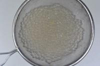 煮西米露:起锅煮水,水开时把泡西米倒入锅中,慢慢沿着顺时针方向和西米,当其乳白色慢慢变得晶莹剔透时,西米就煮熟了,熄火后过冷开水,沥干备用。