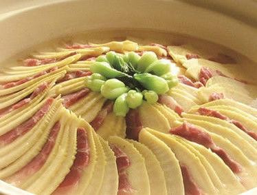 食材原生态,徽州土特产,母亲河中水,举箸品乡愁;腊香扑鼻,笋香钻心,鲜香满席,热气腾腾;肥而不腻,瘦而不柴,咸中有甜,越嚼越香。粗纤维素含量多,脾胃虚弱、平时消化功能就不好的人,建议不要食用太多;有肠胃、肝硬化疾病的患者,不要过量食用春笋,否则非常容易引起胃出血,加重病情等。