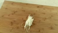 大葱切丝、香菜切段、姜切丝、红尖椒切丝。