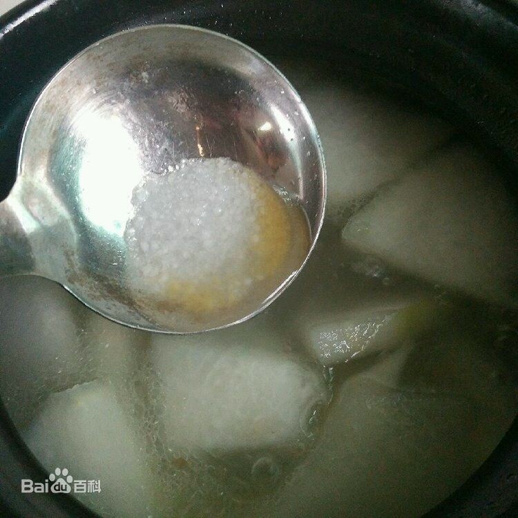 30分钟后,放入冬瓜,再煮十几分钟。最后加入盐和鸡精。