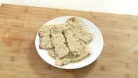 将牛肉表面裹上一层面粉,再裹上一层鸡蛋液,然后粘上白芝麻。