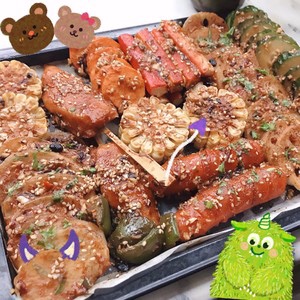 把想吃的切片切片切片,摆盘摆盘摆盘,刷酱刷酱刷酱,200度烤30分钟
