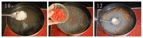再加入少许白糖,起到给汤汁增鲜的作用;水烧开后,将切好的红彩椒丝放进去;接着放入水淀粉,给汤汁勾个芡汁。