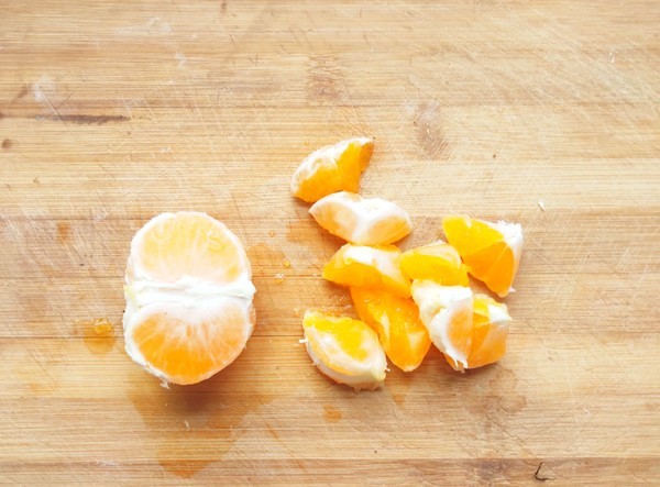 橘子去皮切块,放入盘中备用。
