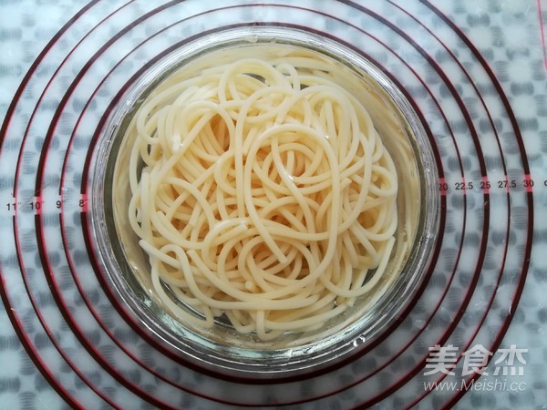 意面煮好后捞出用凉水泡一下,防止粘一起