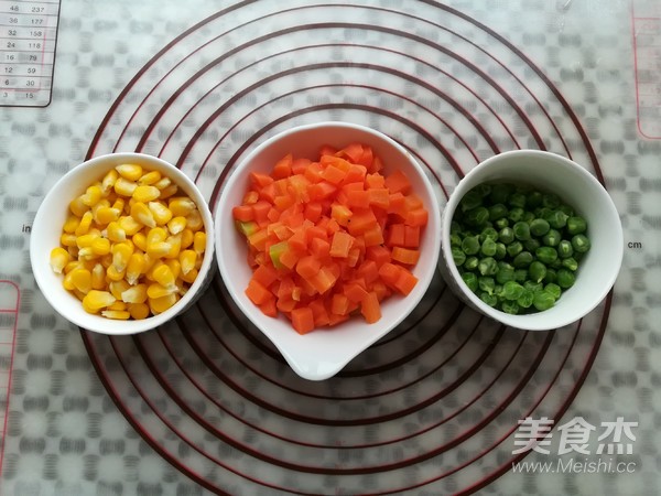 豌豆,玉米,胡萝卜分别煮熟捞出沥干水份备用