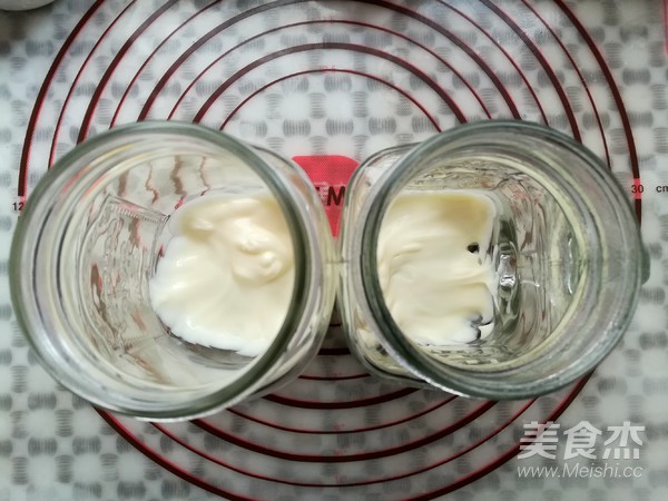 在梅森杯底部分别挤25克的丘比原味沙拉酱
