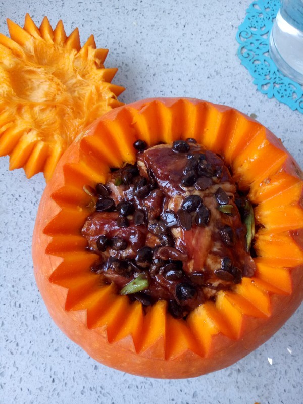 盖上南瓜盖子,整个南瓜放进一个深盘里
