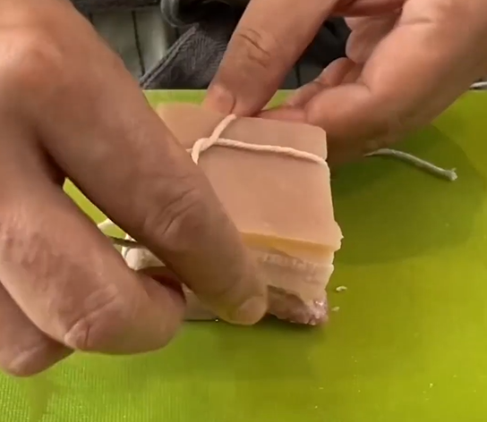 将肉用细绳绑住