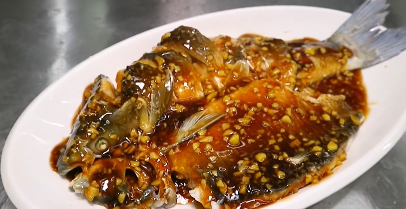 捞鱼,下料汁,小火煮制浓稠后姜末下锅
