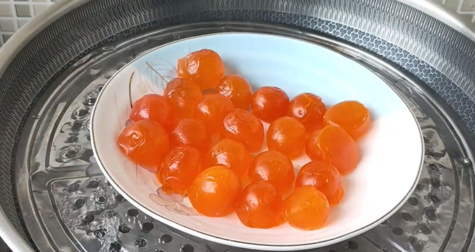 咸蛋黄放热水锅上蒸15分钟