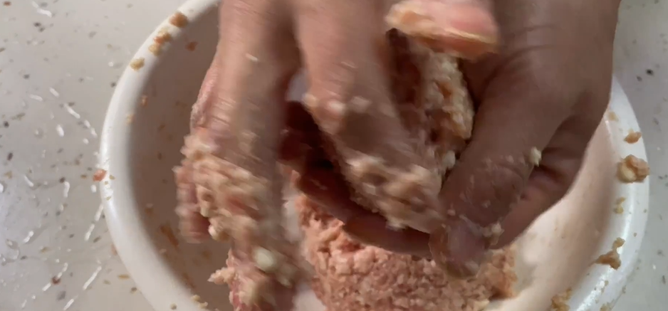 把肉泥捏成大一点的肉丸