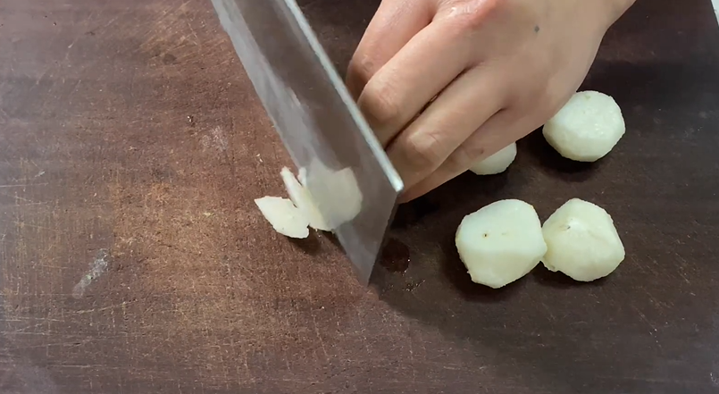 马蹄去皮洗净后,切成粒状备用
