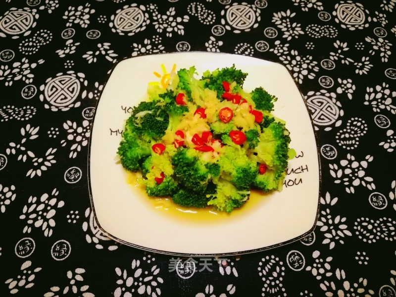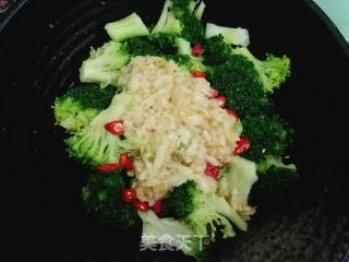 蒜汁浇到西兰花上,拌匀盛盘