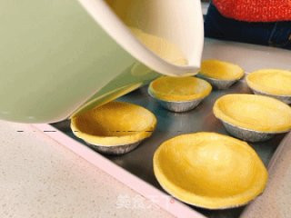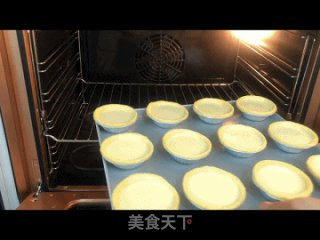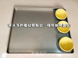 将冰冻的蛋挞皮取出小心拆开,摆放烤盘上。