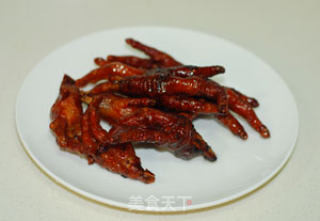 把卤汁连同鸡爪一同放入锅中,大火收干汁水即可