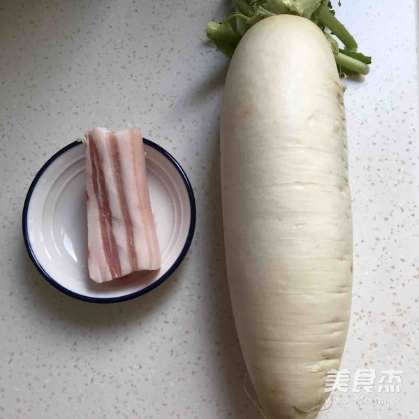 准备食材,五花肉切片,萝卜去皮切块