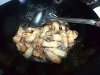 在加入酱油和料酒继续炒