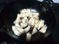 锅烧干,将切好的五花肉放锅中小火炒干水分