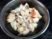 去水后的猪肉切成大小一致的四方形
