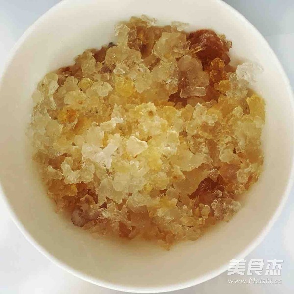 桃胶隔夜泡发,清洗几次将杂质去除。