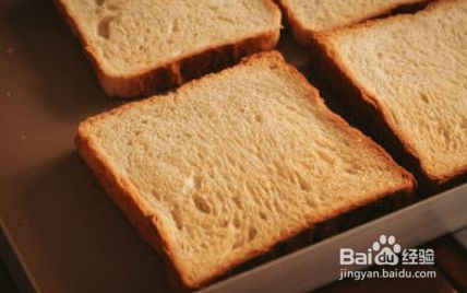 将吐司切片,放入烤箱,上下火180度,5分钟。