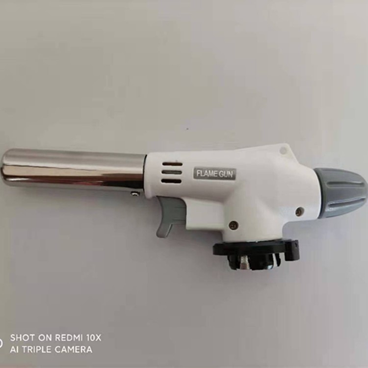 用厨房用喷火枪将鹅肝表面加热