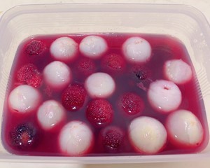 冷水下锅放杨梅煮开下冰糖,再煮五分钟把颜色煮出来,下荔枝煮两分钟即可!