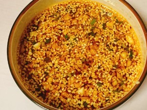 ⚠️⚠️调个灵魂酱汁:适量葱花蒜末+一勺白芝麻+一勺辣椒粉+少许孜然粉,淋上热油+一勺生抽+一勺