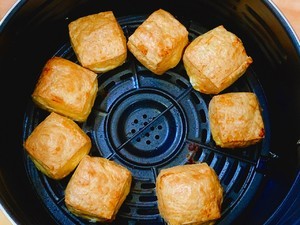 老豆腐用水浸泡一下挤干水分,切块!空气炸锅网格表面刷油防粘,放入豆腐,180度烤15分钟!