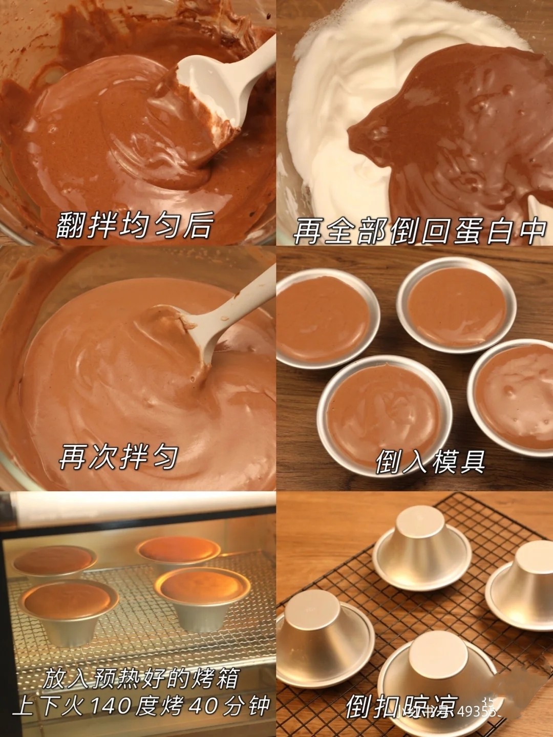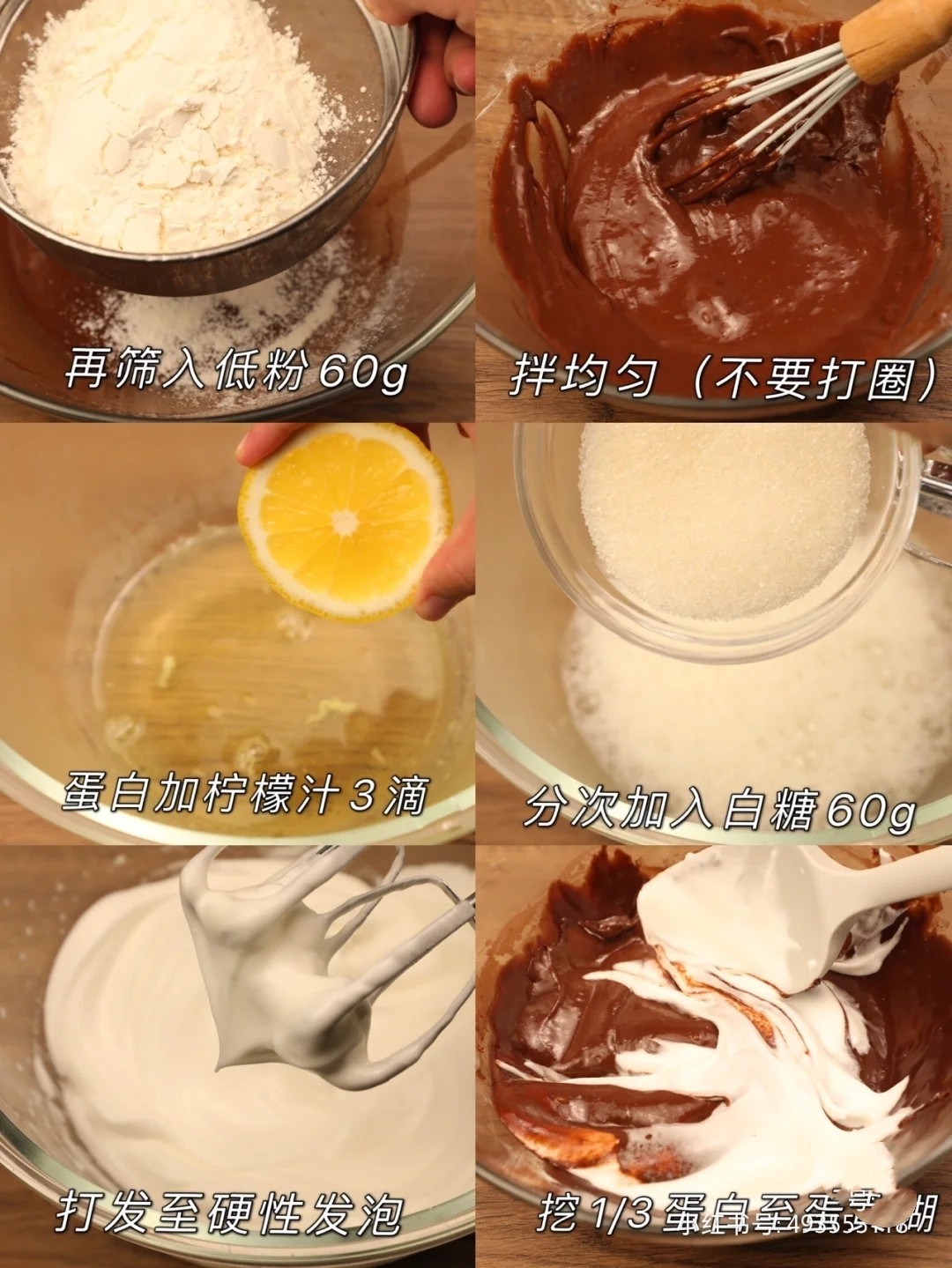先把1/3蛋白加入蛋黄糊拌匀,再全部倒回蛋白中,翻拌均匀