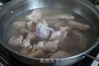 锅里的水烧开后,将鸭肉放入,焯一下水,去除血腥味和浮沫