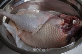 老鸭的皮去掉,这样煲出来的汤没有那么肥腻,斩大块