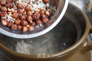 瓦锅里加水,放入鸭肉、姜片、蜜枣,水烧开后,再投入浸泡好的莲子、肇实、薏米,这样防止粘底