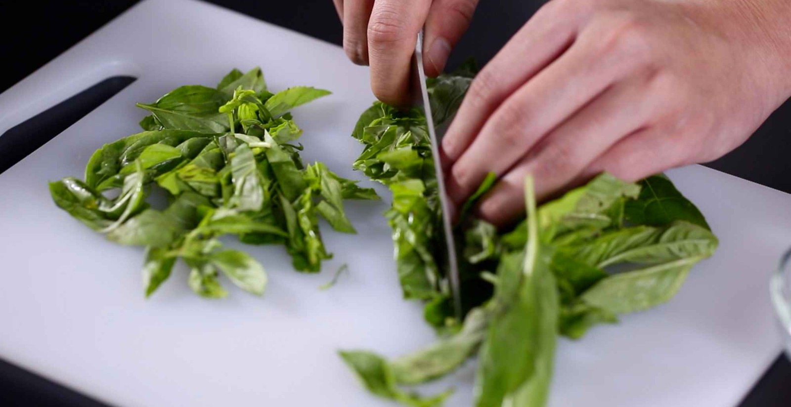 将大蒜切片、罗勒叶切碎、帕玛森起司切碎备用
