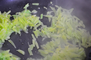 锅内倒入植物油,先煸炒莴笋丝