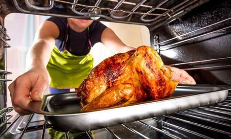 清理鸡的内脏,将葱姜塞入鸡的腹腔中,用牙签封上开口