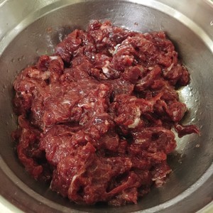 牛肉切片,加入1汤勺淀粉,半勺盐,2汤勺水,适量食用油,抓拌均匀,腌制10分钟以上,这样的牛肉煮出来不会老。