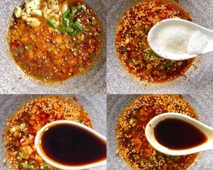 碗里放入2勺辣椒粉+1勺熟白芝麻+1勺葱花+2勺蒜末+小米辣,浇热油,然后再加入2勺陈醋+2勺生抽+半勺老抽+小半勺盐糖拌匀,加入半碗白开水;