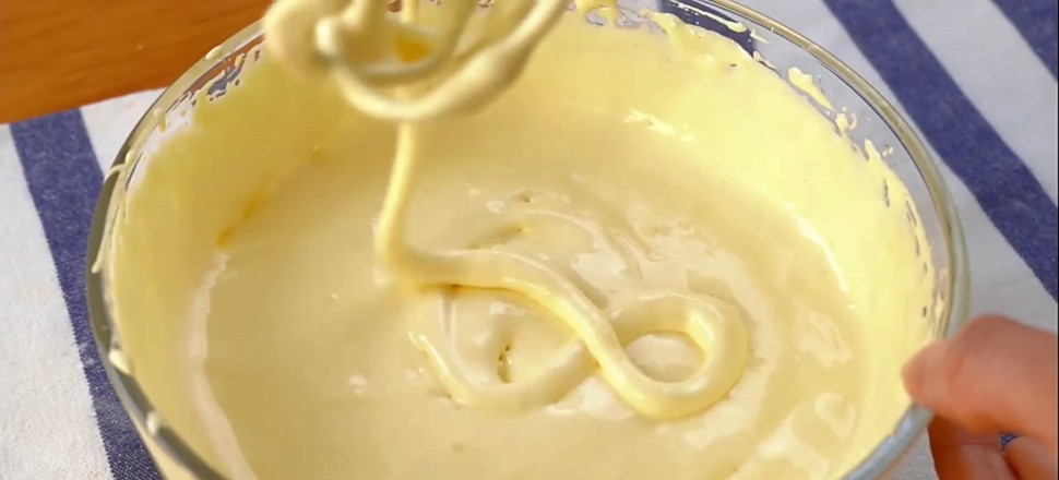 打蛋器开高速打发,这个过程会比较久一点,直到打发至画一个8字形不容易消失就可以了