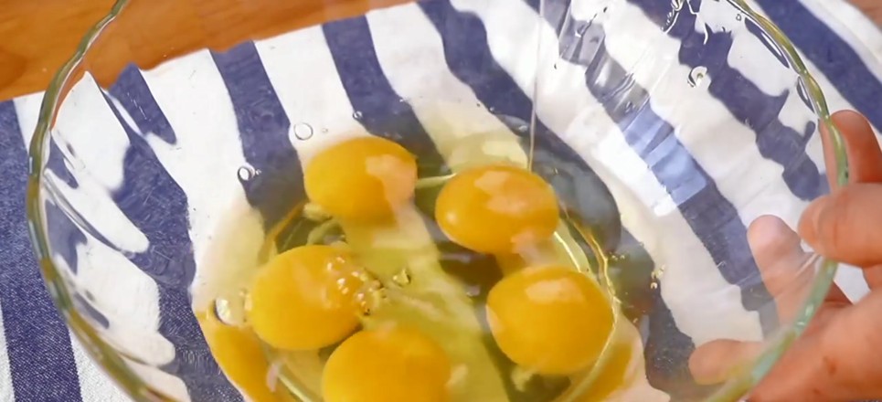 首先做虎皮。把八个鸡蛋磕入无油无水的碗中